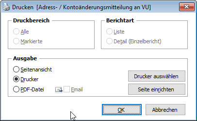 4. Wählen Sie den Eintrag „Adress- / Kontoänderungsmitteilung an VU“