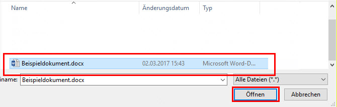 6. Markieren Sie die zu importierenden Dokumente in der Dialogmaske Dateien importieren und wählen Sie dann die Schaltfläche Öffnen