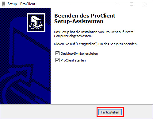 ProClient wird auf Ihren Rechner eingerichtet. Dies kann einen kurzen Moment dauern.
