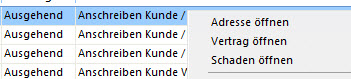 Damit man jetzt noch schnell er im Programm zu gewünschter Adresse, Vertrag oder Schaden kommt, kann man mit einem Maus-Rechtsklick auf das Dokument das gewünschte Ziel auswählen.