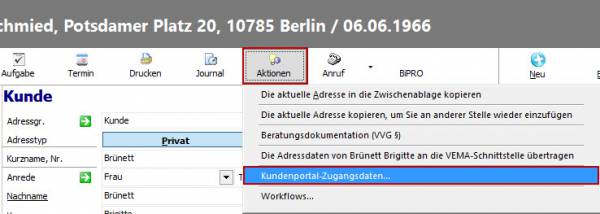 Die gesamte Steuerung für das Kundenportal ist in ProClient integriert.