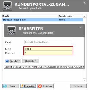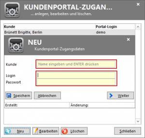 Um für einen Kunden die Zugangsdaten zu hinterlegen haben Sie zwei Möglichkeiten. Direkt auf der Kundenmaske oder unter den Stammdaten.