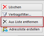 Über die Schalftfläche „Aus Liste entfernen“ oder die Taste „Entf“ können Sie Einträge nur aus dieser geöffneten Trefferliste entfernen.