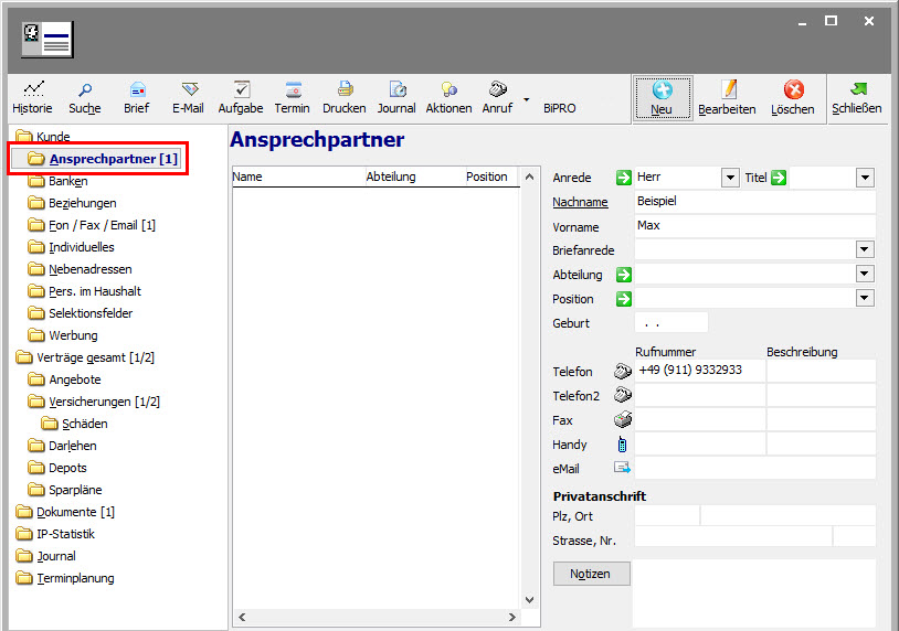 Ansprechpartner anlegen
