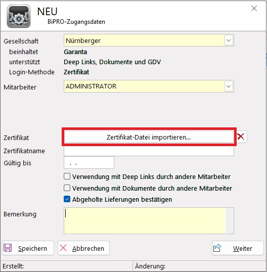 BiPRO Zugangsdaten