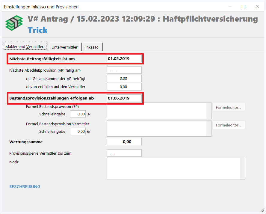 Grundeinstellungen für Provisionen